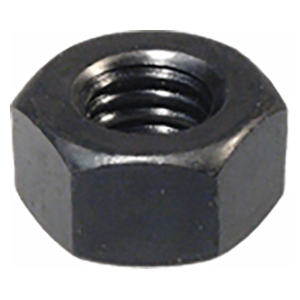 High-quality heavy-hex nut. Available in steel with thread sizes from 1/4-20 to 1-1/4"-7 (M6 to M30 in metric), and in stainless steel with thread sizes from 1/4-20 to 3/4-10. Many inch sizes are also available with fine thread pitch.