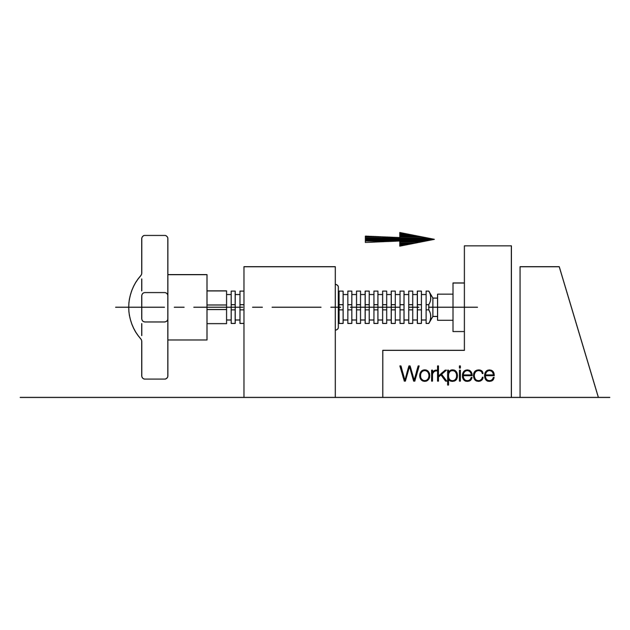 1 Slide clamping bar forward to contact the workpiece. 2Turn clockwise to engage the threaded collar and apply clamping force. 3After machining, turn counterclockwise to unclamp and disengage the collar. 4Slide clamping bar back for unloading.