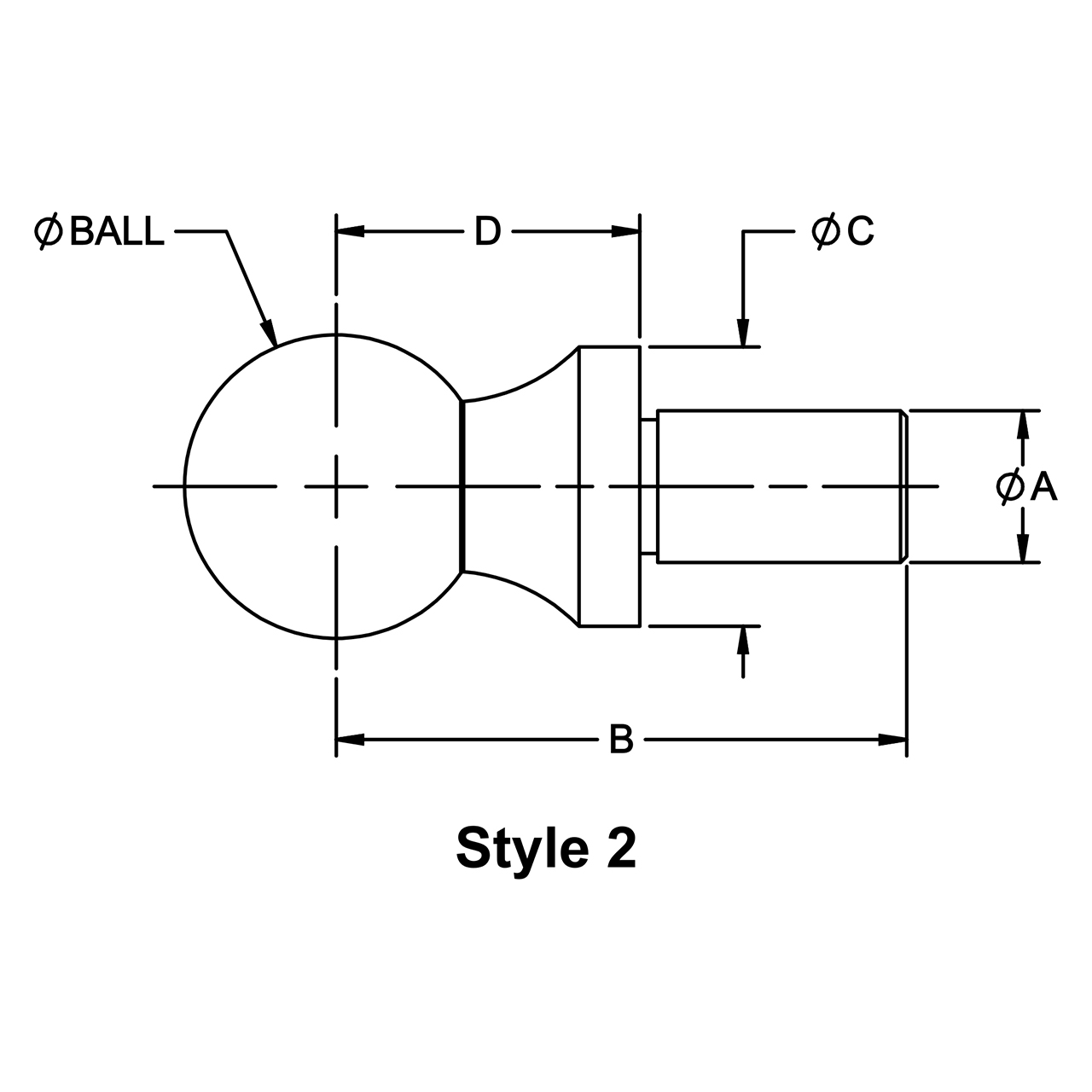 | Part Number | BALL DIA ±.003 | A DIA NOMINAL | A DIA ACTUAL | B | C | D ±.003 | STYLE |
