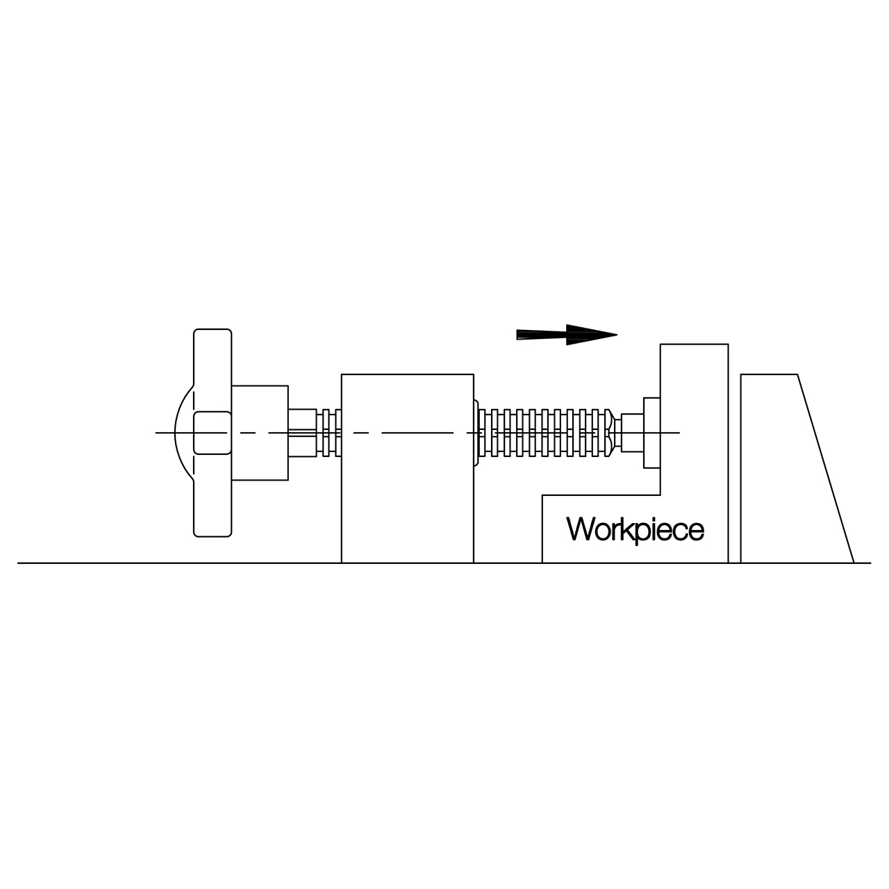 1 Slide clamping bar forward to contact the workpiece. 2Turn clockwise to engage the threaded collar and apply clamping force. 3After machining, turn counterclockwise to unclamp and disengage the collar. 4Slide clamping bar back for unloading.