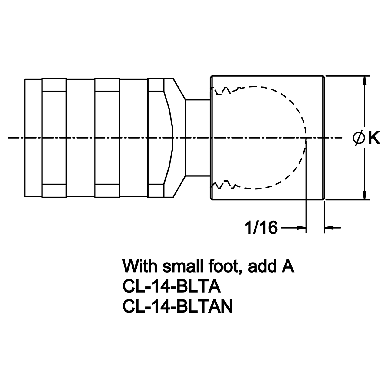 Choice of four foot types. Bar-Lok Quick-Acting Screw Clamps use our patented left-hand-thread swivel-foot system. The ball end of the body screws into the foot for easy installation and removal. Once the ball threads pass beyond the foot threads, the foot can rotate and pivot freely (20 Degree total angle). Foot threads are left-hand to positively prevent accidental backout during use. Delrin feet are optional for types A and B. To order with a Delrin foot, add "N" to the part number, e.g. CL-14-BLTBN. Note: Delrin feet are not threaded – they snap on and off.