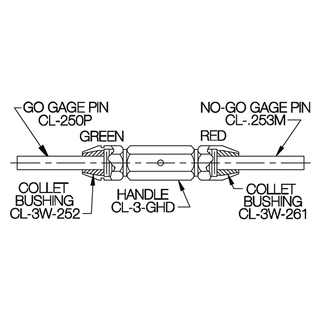 | Part Number | FITS PIN DIAMETERS | FITS SINGLE-END GAGE HANDLE "GO" (GREEN) | FITS DOUBLE-END GAGE HANDLE (GREEN & RED) |