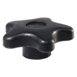 Star Knobs have five lobes to provide a firm, sure grip for applications requiring quick tightening and high torque. These thermoplastic knobs have smooth, rounded lobes to prevent snagging. Textured non-slip, non-glare finish. Molded-in brass insert provides superior thread strength. One knob size, available with tapped-hole sizes from 1/4-20 to 3/8-16. Non-standard thread sizes, reamed holes, molded-in studs, or special colors are available in quantities of 500 and above. Made in USA.