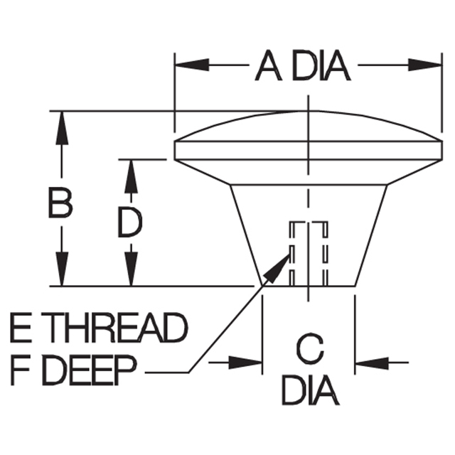 Versatile knobs with an enlarged head for pulling, pushing, or lifting. Choice of two knob sizes, available with tapped-hole sizes from #10-32 to 3/8-16 (M5 to M8 in metric). Molded-in brass insert provides superior thread strength. Non-standard thread sizes or molded-in studs are available in quantities of 500 and above. Made in USA.