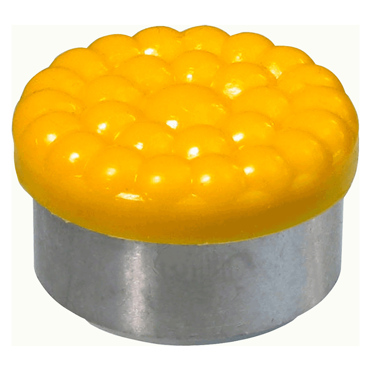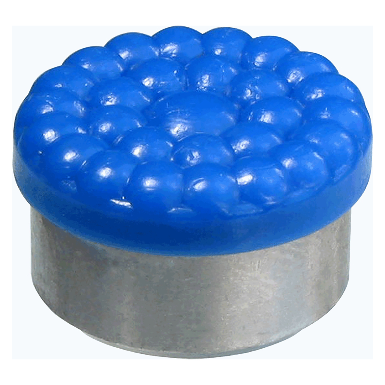 Round Grippers are replaceable inserts that provide additional holding force and/or wear resistance. The grippers shown here have a urethane surface permanently bonded to a stainless steel pad. This non-marking, non-staining urethane provides excellent protection against damage to finished workpieces. The bubbled texture of the urethane surface offers firm gripping, yet allows air to escape so that no suction is created under load. Urethane also provides excellent wear resistance, and is available in three firmnesses to suit a wide variety of applications. The stainless steel pad provides high strength and excellent corrosion resistance. Available in diameters from 3/8 to 1" (10 to 25mm in metric), each in a choice of three durometer hardnesses. Made in USA.