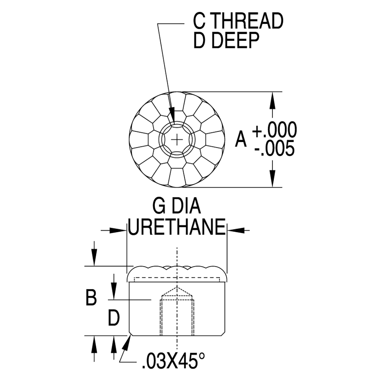 | Part Number | A DIA | DUROMETER HARDNESS | COLOR | B | C THREAD | D | G DIA |