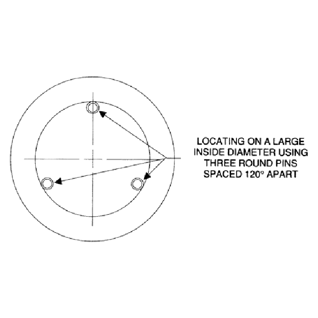 A series of locating pins can take the place of a locating plug. The pins are positioned at three points, 120 degrees apart, around the internal diameter of the hole. This arrangement is usually much more economical than making a custom plug. Fool proofing prevents improper loading of a workpiece. The problem is most prevalent with parts that are symmetrical or located concentrically. The simplest way to foolproof a work holder is to position one or two pins in a location that ensures correct orientation.