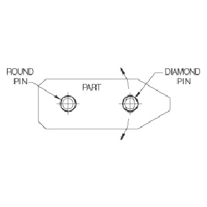 When a round pin and diamond pin are used together, the round pin is the primary, 2-axis locator, while the diamond pin is the secondary, 1-axis locator. Diamond pins are relieved to locate only radially around the round pin, avoiding redundant location. This prevents binding, yet still maintains high accuracy.