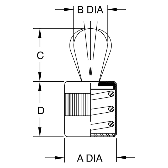 | Part Number | A DIA | APPROX SIDE FORCE (lbs) | B DIA | C | D | X DIM WHEN Y EQUALS 1/16 | X DIM WHEN Y EQUALS 1/8 | X DIM WHEN Y EQUALS 3/16 | X DIM WHEN Y EQUALS 1/4 | X DIM WHEN Y EQUALS 5/16 | X DIM WHEN Y EQUALS 3/8 | X DIM WHEN Y EQUALS 7/16 | X DIM WHEN Y EQUALS 1/2 OR MORE |