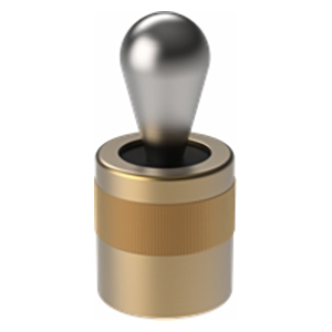 Spring Locating Pins are press-fit inserts that provide an extremely compact way to apply side force to a workpiece, for positioning or light clamping. The version shown here, with a case-hardened steel contact pin and a coil spring, is our most popular. A protective rubber seal around the contact pin keeps out dirt and chips. This type has the most travel, so it allows the most part-size variation. Available in fives sizes from 1/4" to 5/8" body diameter. Choice of light, medium, or heavy force in each size.