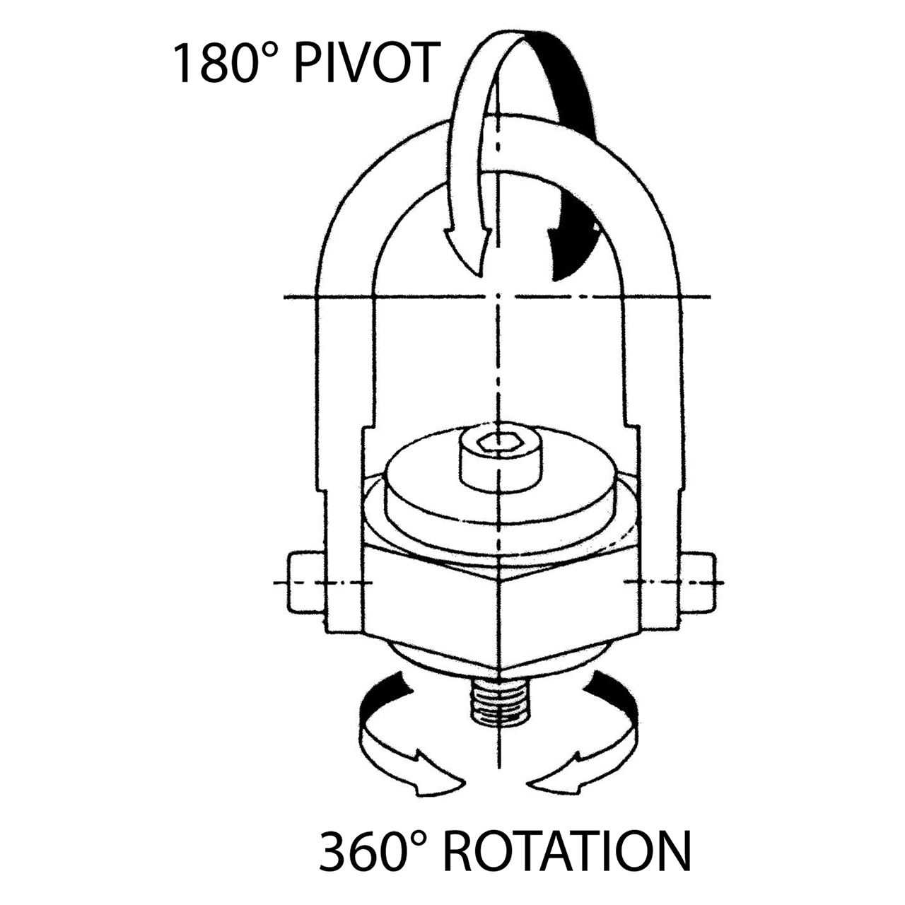 The original safety-engineered hoist ring. Pivots 180 degrees and swivels 360 degrees simultaneously to allow lifting from any direction.