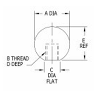 | Part Number | A DIA (mm) | B THREAD | THREAD PITCH (mm) | C DIA (mm) | D (mm) | E (mm) |
