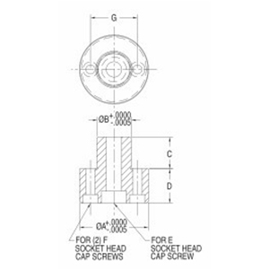 | Part Number | A DIA NOMINAL | A DIA ACTUAL | B DIA NOMINAL | B DIA ACTUAL | C | D | E SOCKET-HEAD CAP SCREW (Order separately below – 1 Required) | F SOCKET-HEAD CAP SCREW (Order separately below – 2 Required) | G |
