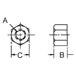 High-quality heavy-hex nut. Available in steel with thread sizes from 1/4-20 to 1-1/4"-7 (M6 to M30 in metric), and in stainless steel with thread sizes from 1/4-20 to 3/4-10. Many inch sizes are also available with fine thread pitch.