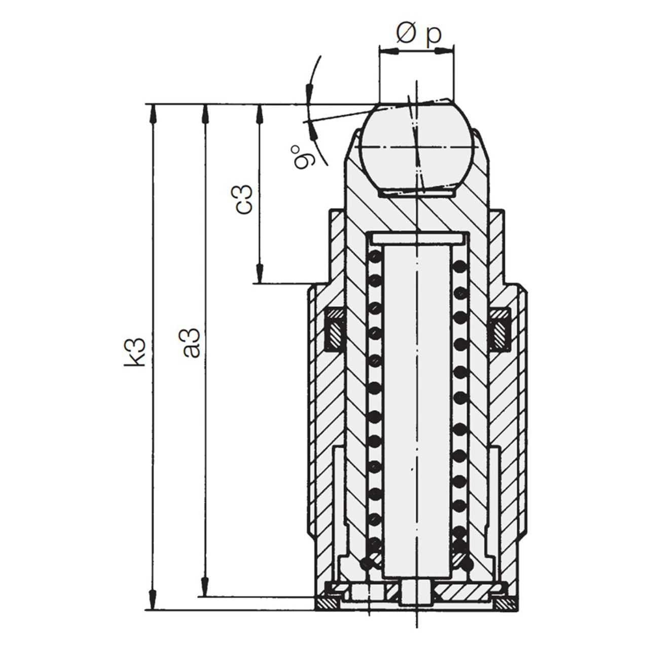 | Part Number | MAXIMUM CLAMPING FORCE (lbs) | MAXIMUM CLAMPING FORCE (kN) | E BODY THREAD | PISTON DIA (mm) | CLAMPING STROKE (mm) | A3 (mm) | B (mm) | C3 (mm) | K3 (mm) | P DIA (mm) | SW1 (mm) | SEATING TORQUE (ft-lbs) | WEIGHT (lbs) |