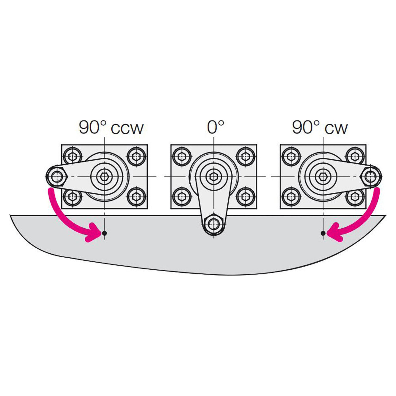 5000 psi max Single Acting Swing Clamps utilize a sturdy helical-cam mechanism to swing the clamping arm clear for unrestricted loading. The Compact Swing Clamps shown here are extremely small, economical clamps suitable for many applications. Clamping arm can be mounted to start its 90 Degree swing from any position within 360 Degree. The flange-base version provides many plumbing options, including manifold mounting. Available in one clamp size, single acting (shown here) or double acting (see Related Products below), standard fittings or manifold mounted, with a choice of clockwise, counterclockwise, or zero Degree swing. Available with 45 Degree and 60 Degree swing angles by special order. Clamping force at 5000 psi for single-acting clamps with a standard arm: 450 lbs (1 series)