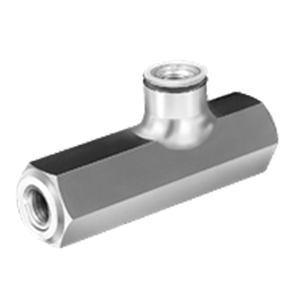 7250 psi Max Holds clamping pressure until released by a separate pilot pressure line (allows only one-way flow until released). Can be used as a safety device in case the fluid line to the fixture could become damaged. Can also be used to prevent workpieces from floating between opposing clamps. Leakage-free valve design with spring-loaded ball seat. The version shown here is used for in-line mounting with standard fittings and exposed fluid lines. Also available in a manifold-mounted version. Available in two sizes: Standard capacity (920 cu.in./min flow rate) High capacity (3360 cu.in./min flow rate)