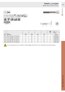 The cutting data have to be increased or reduced depending on the machine, material and work piece clamping.