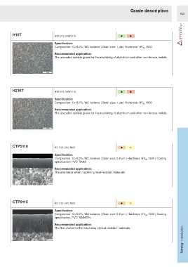 Composition: Co 6.0%; WC balance | Grain size: 0.8 µm | Hardness: HV 1820 | Coating