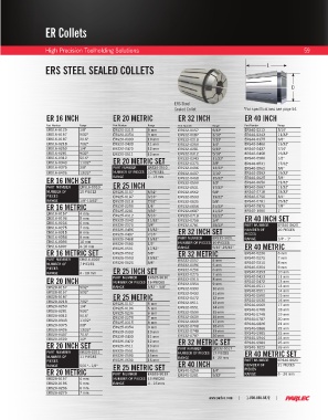 PART NUMBER ERS20-S011 ERS25-0551 14mm NUMBER OF PIECES 17 PIECES ER 40 METRIC SET