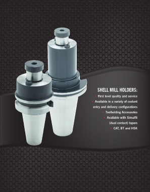 SHELL MILL HOLDERS: • First level quality and service • Available in a variety of coolant entry and delivery configurations • Toolholding Accessories • Available with Simulfit (dual contact) tapers • CAT, BT and HSK