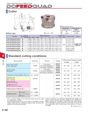 TAC Mills Work material Hardness First choice Grades Cutting speed Feed per tooth