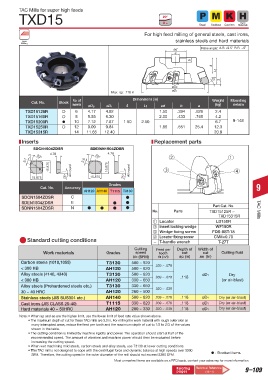 many interrupted areas, reduce the feed per tooth and the maximum depth of cut to 1/2 to 2/3 of the values