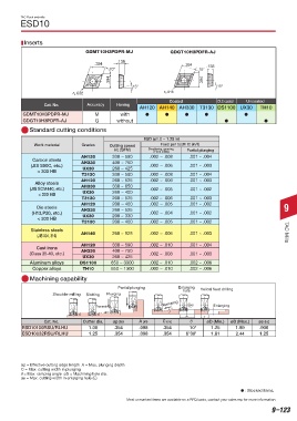 Cat. No. Cutter dia. ap (in) A (in) C (in) θ øD (Min.) øD (Max.) ae (in)