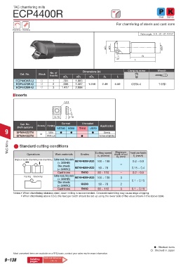 Single or double chamfering hole chamfering Carbon steels, Alloy steels NS740•N308•UX30 100 ~ 150 0.2 ~ 0.5