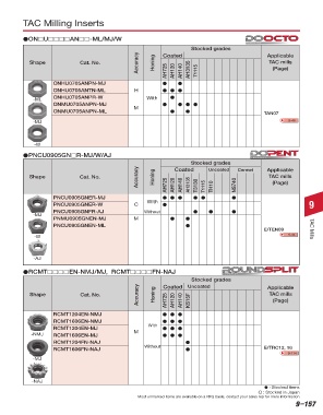 Shape Cat. No. Coated Uncoated Cermet TUNGAL O Y Applicable