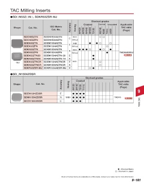 Shape Cat. No. ISO Metric Accuracy Honing Coated Cermet Uncoated Applicable