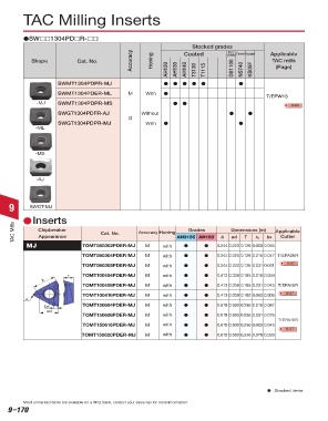 TAC Mills Chipbreaker Cat. No. Accuracy Honing AH3135 AH120 A Dimensions (in) bs Applicable