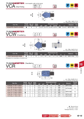 VCA Chamfering k Interchangable solid carbide heads øD α b øD a L p b α b a L øD p a L p ød1 45° p S S ød1 S Steel Stainless Cast Iron