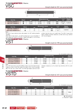 Endmills ● For VST type shank, just VTB slotting head is recommended. If other external clearance, so the shank may interfere with the work
