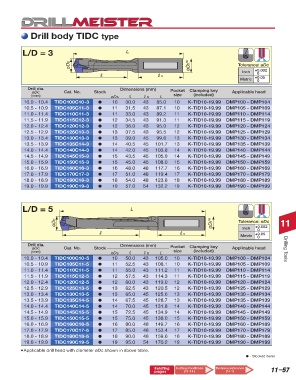 ● Applicable drill head with diameter øDc shown in above table.